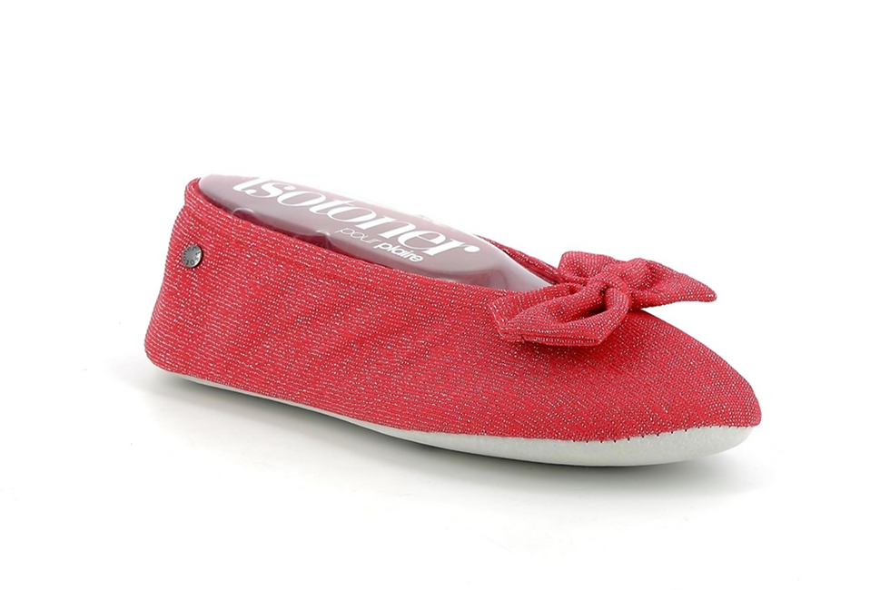 Chausson Femme Isotoner - Taupe - Noeud et pompon